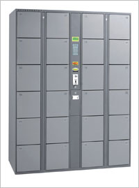 存物时:先在投币口投入硬币或纸币(金额可设置),系统找到有未分配的箱,则打印机开始打印该箱的密码条,条上有条形码及代码。取出密码条,对应的箱门自动打开,按照密码条指定柜门号存物,关好柜门。 取物时:将密码条正面横向的条码部分按示意方向插入条码检测口,机器检测正确后,对应的箱门对自动打开,使用者取完物品关好箱门。由于密码只能使用一次,则原密码自动失效。