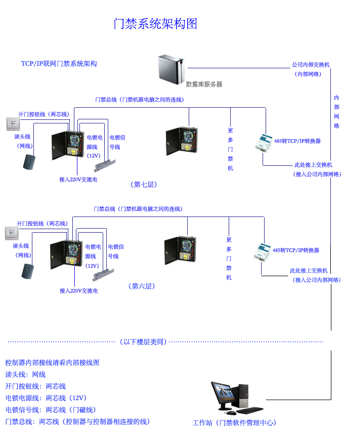 通迅线:门禁机与电脑之间进行通信的线,一组双绞线。